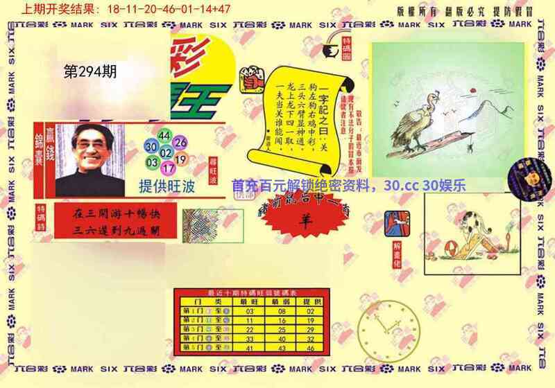 294期九肖 | 兔牛鸡猴羊马蛇鼠狗 | 开:鼠18 |